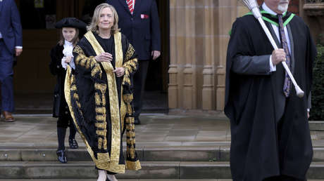 Hillary Clinton wurde am Freitag als erste Kanzlerin der Queen’s University Belfast in das Amt eingeführt. Der Empfang in Belfast war von leidenschaftlichen Protesten begleitet. Die Menschenmenge am Zaun der Uni skandierte “Kriegsverbrecherin” und “Du bist nicht willkommen”. Clintons neue Rolle ist hauptsächlich eine symbolische.